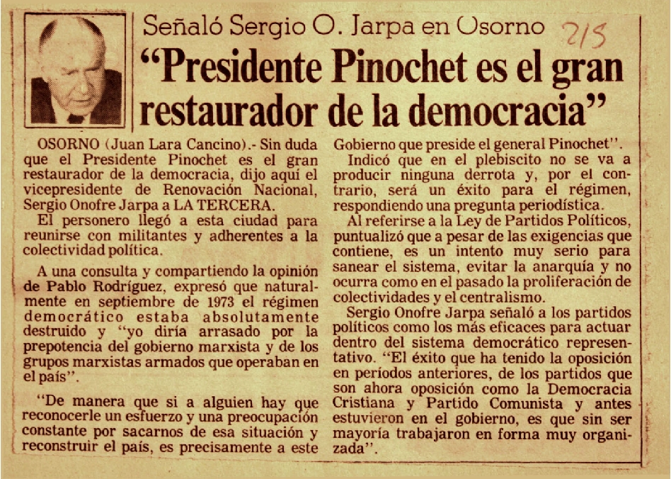 "Presidente Pinochet es el gran restaurador de la democracia"