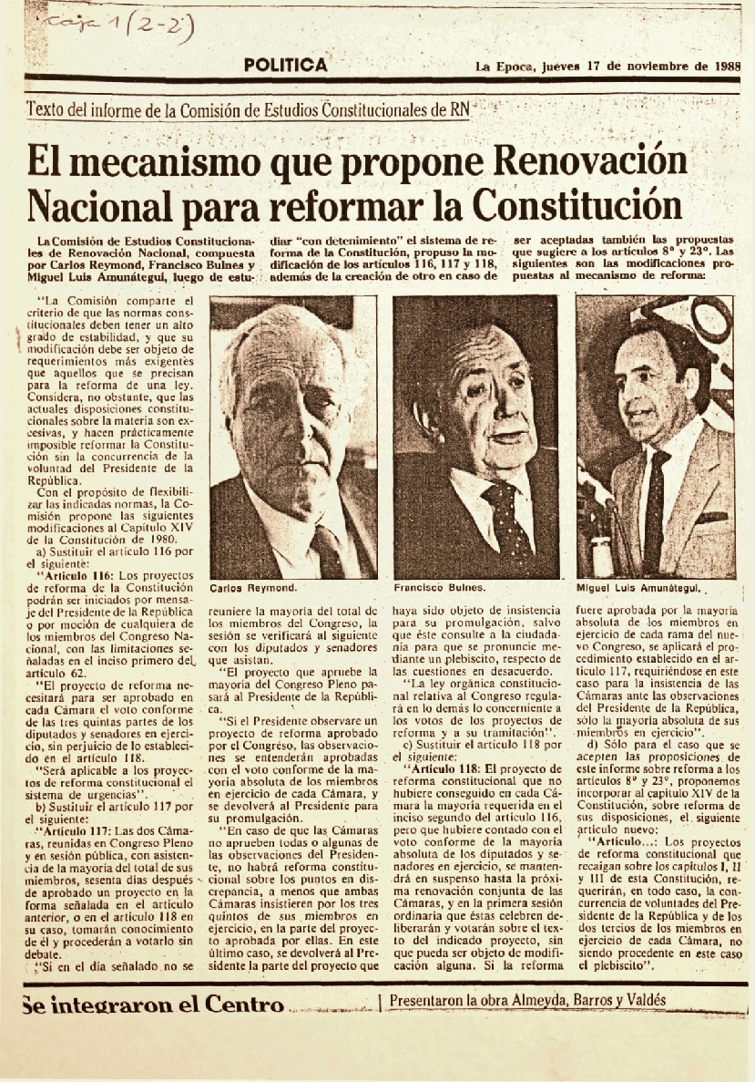 El mecanismo que propone Renovación Nacional para reformar la Constitucion