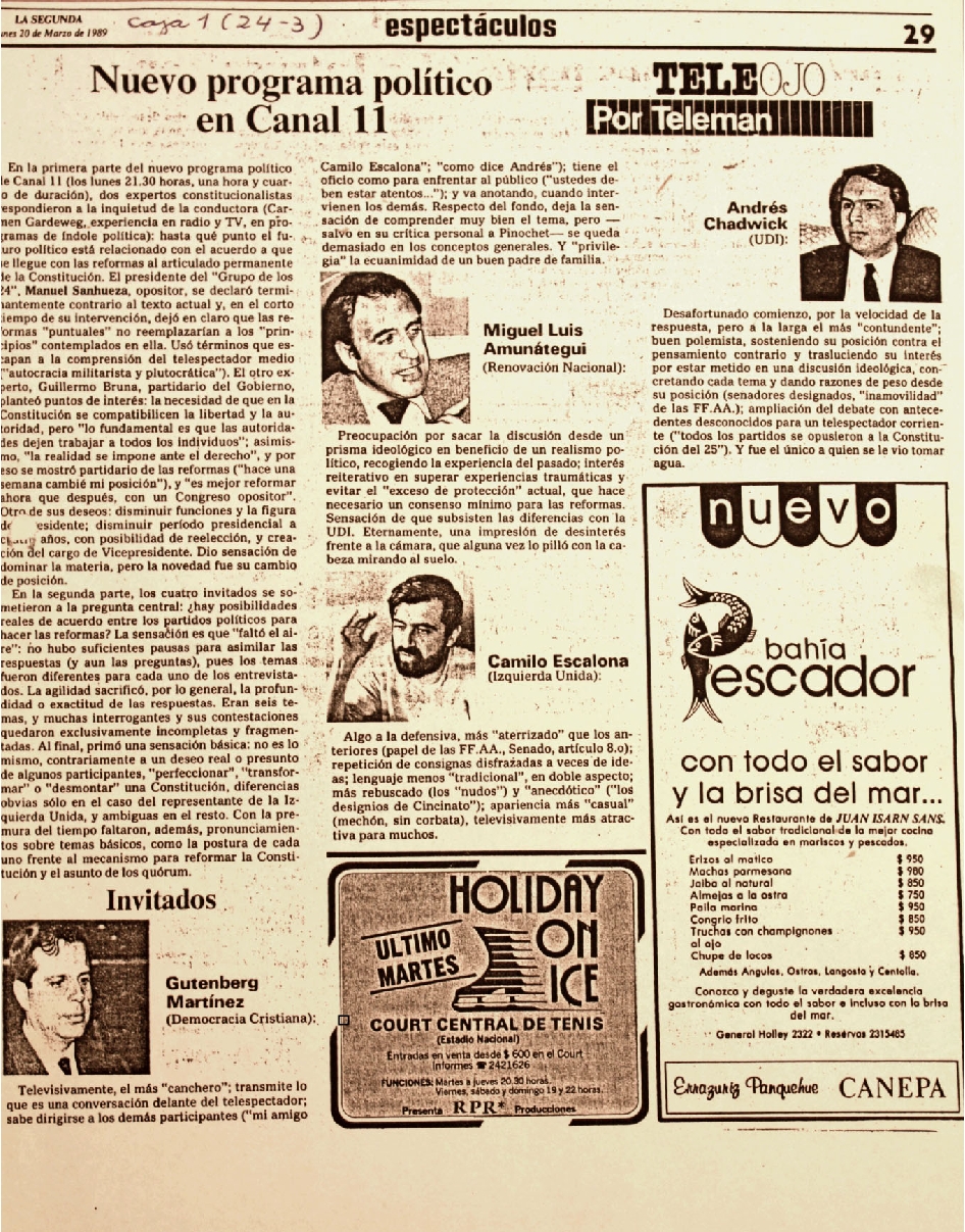 Fotos de Gutemberg Martínez, Miguel Luis Amunátegui, Camilo Escalona.