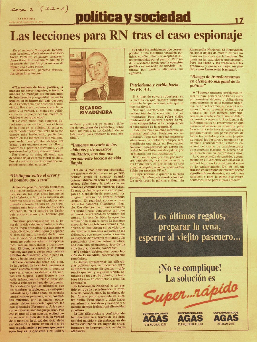 La Segunda, Santiago, 24 de dic. de 1992. p. 17