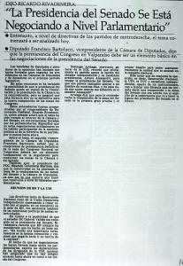 Ricardo Rivadeneira expresó que en las negociaciones existe la posibilidad que la presidencia de la Cámara de Senadores quede en manos de la Concertación y la presidencia de la Cámara de Diputados en la Centro derecha