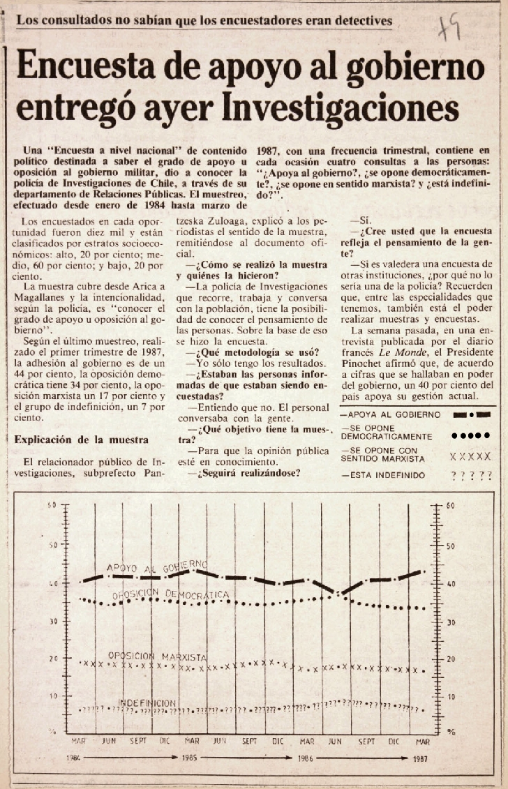 La encuesta de opinión sobre el apoyo al gobierno la habría realizado personal de Investigaciones