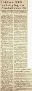 S.Molina en EE.UU: candidato y programa deben definirse en 1987.