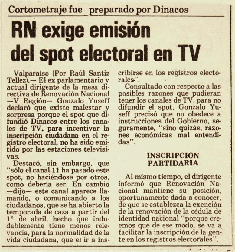 Spot de Dinacos para incentivar la inscripción ciudadana no fue bien recibida en canales de TV.