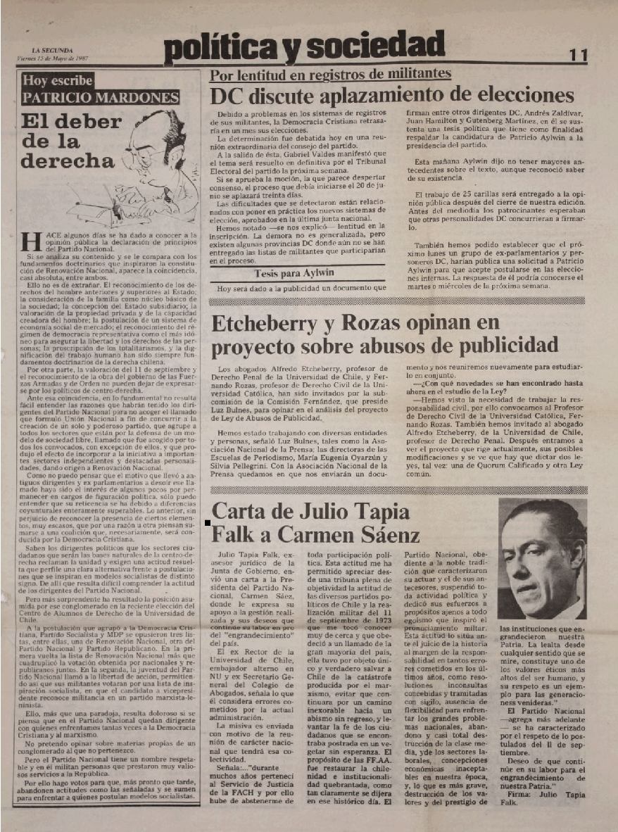 La Nación. Santiago 18 de mayo de 1987