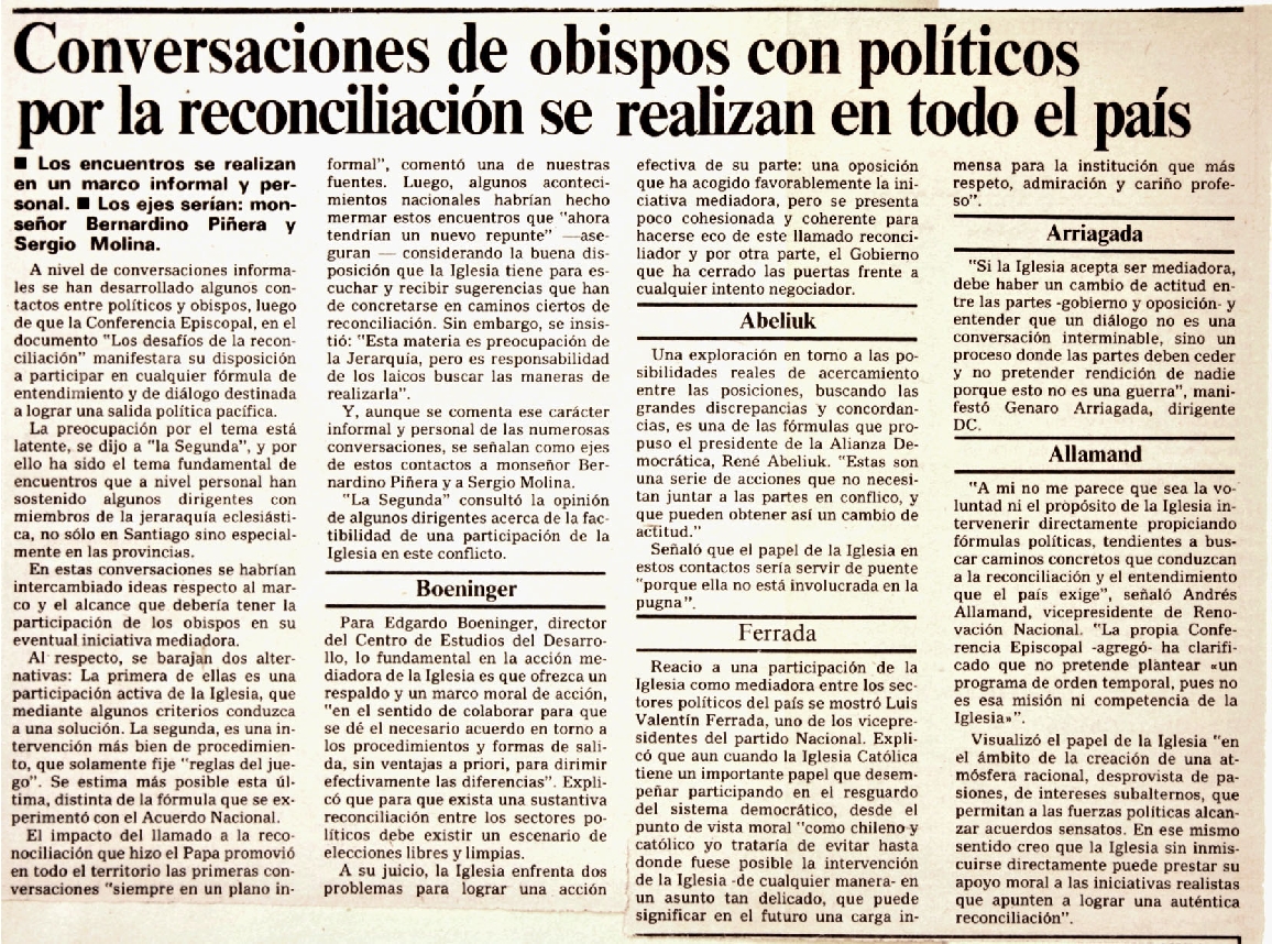 Conversaciones de obispos con políticos por la reconciliación se realizan en todo el país.
