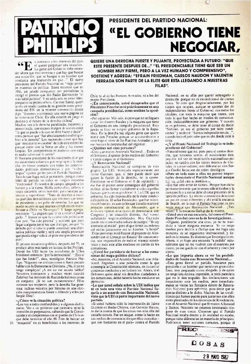 Revista Cosas, Santiago, 29 Mayo 1987