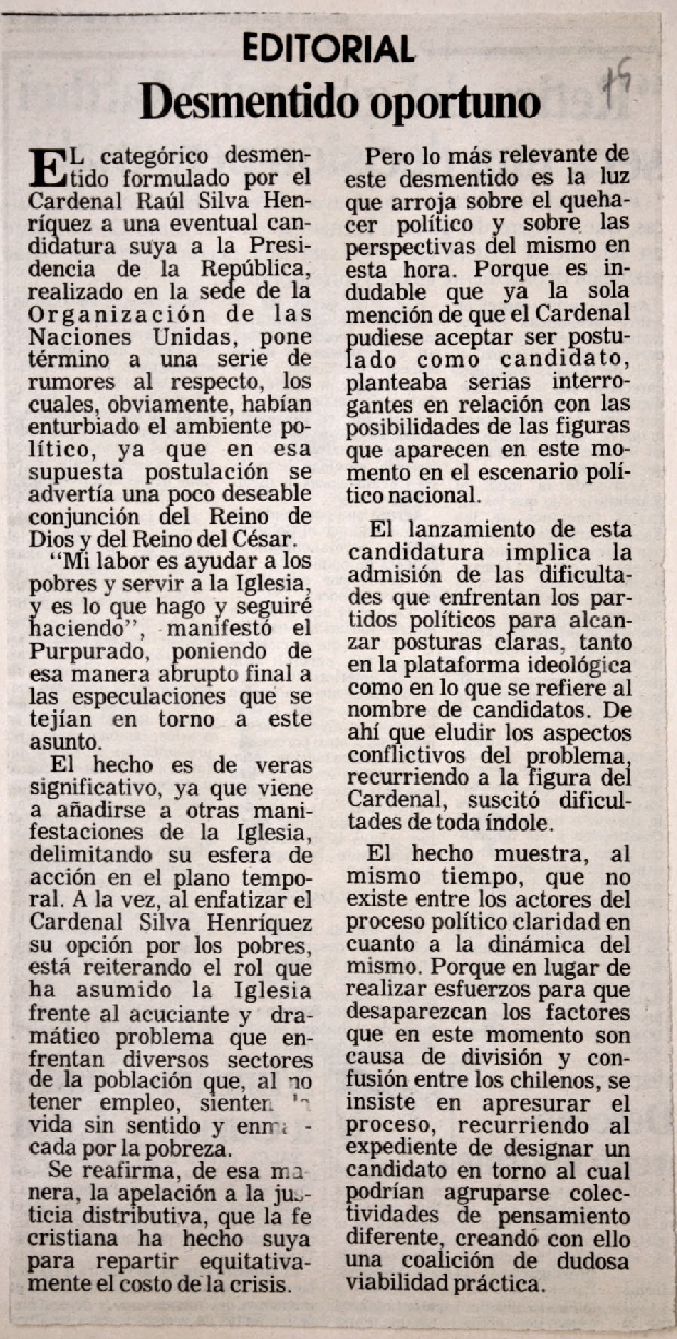 La Tercera, Santiago, 28 de mayo de 1987