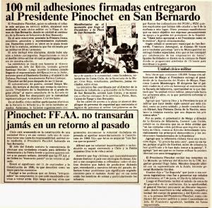 100 mil adhesiones firmadas entregaron al presidente Pinochet en San Bernardo