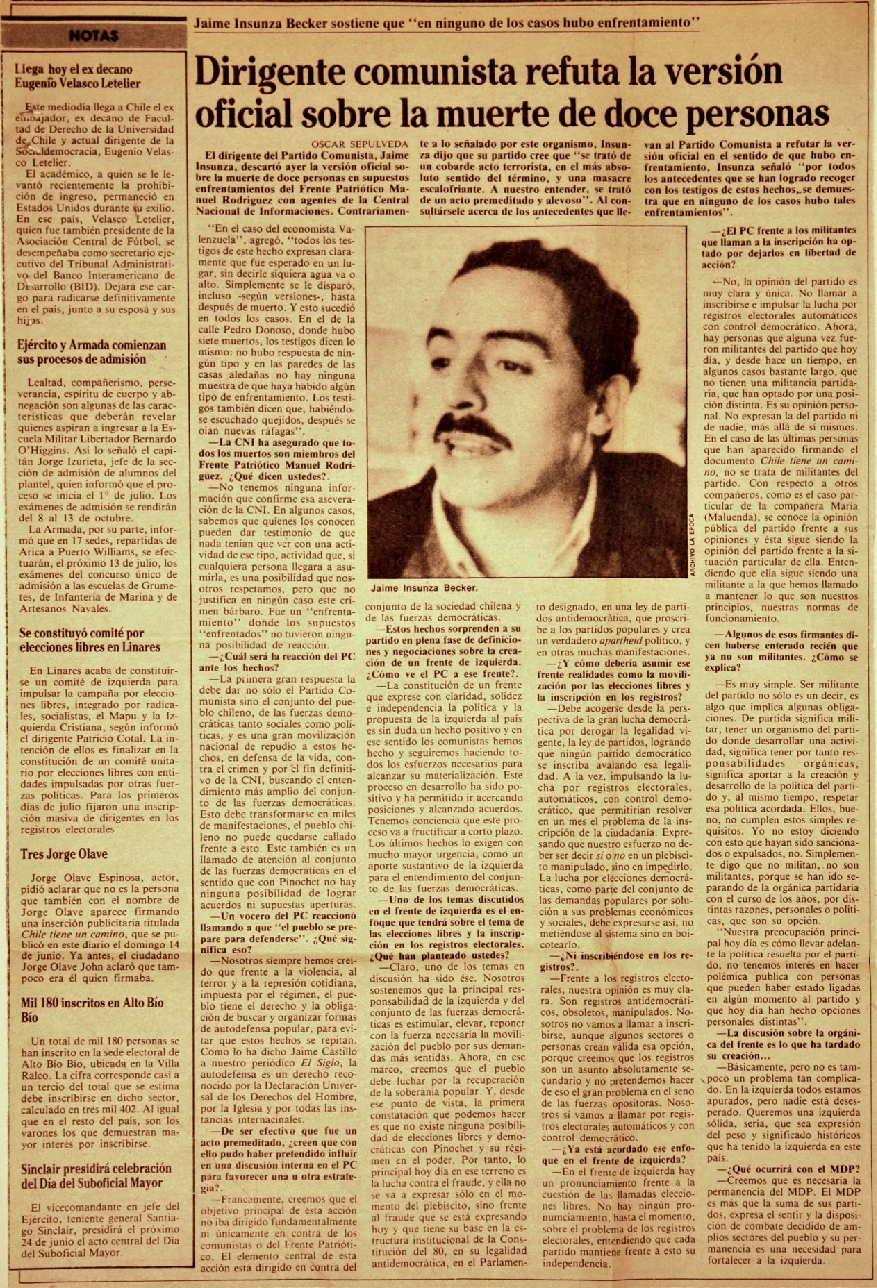 Contrariamente a lo señalado, Insunza dijo que en su partido se cree que "se trató de un cobarde acto terrorista, en el más absoluto sentido del término, y una masacre escalofriante. A nuestro entender se trató de un acto premeditado y alevoso".