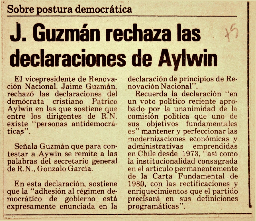 Señala Guzmán que para contestar a Aylwin se remite a las palabras del secretario general de RN ., Gonzalo García.