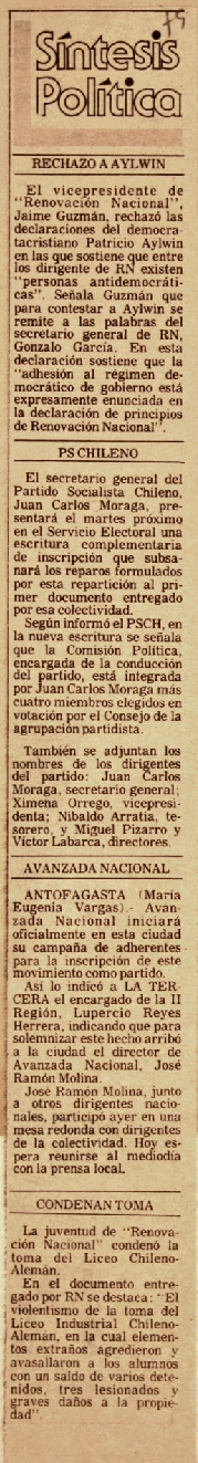 El vicepresidente de "Renovación Nacional", Jaime Guzmán, rechazó las declaraciones del democratacristiano Patricio Aylwin en las que sostiene que entre los dirigentes de RN existen "personas antidemocráticas".