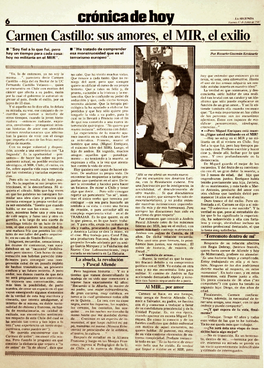 Carmen Castillo: sus amores, el MIR, el exilio.