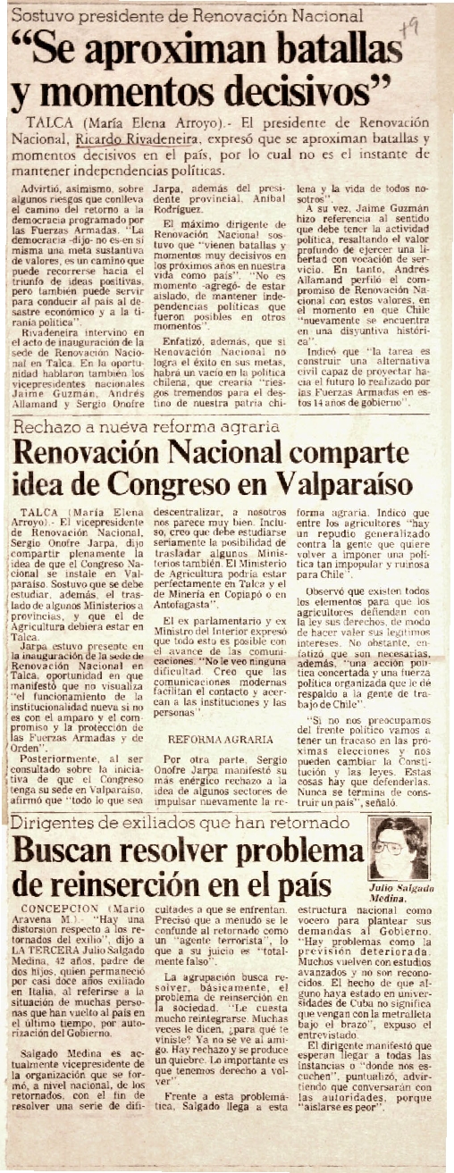 Ricardo Rivadenerira, expresó que por lo cual no es el instante de mantener independencias políticas.