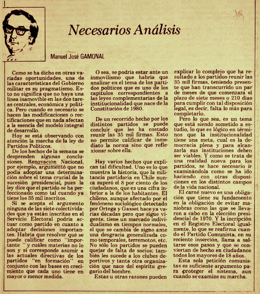Renovación Nacional, argumentó que no podía adoptar una determinación sobre el tema crucial de la sucesión presidencial.