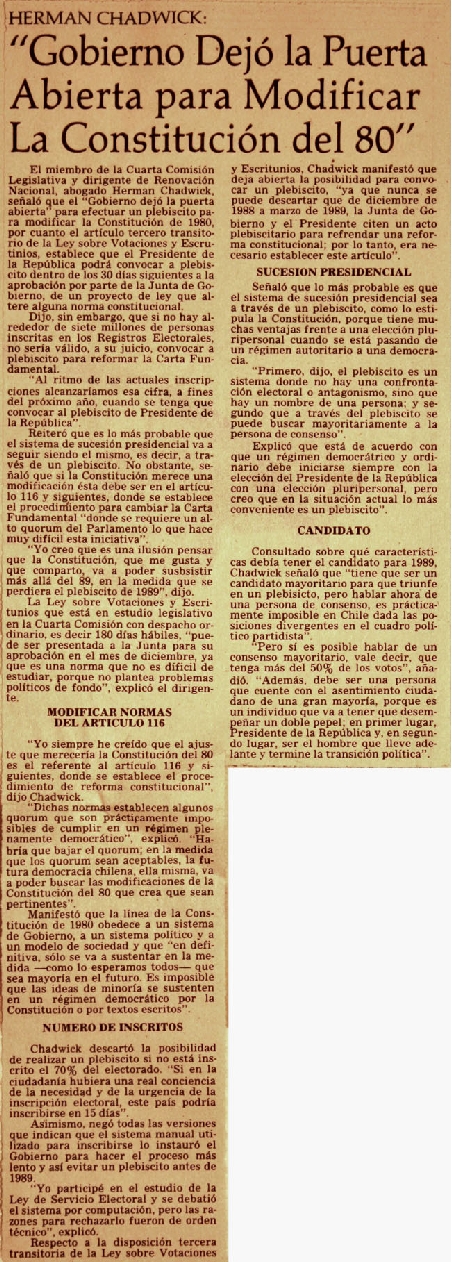 "Gobierno Dejó la Puerta Abierta para Modificar La Constitución del 80"