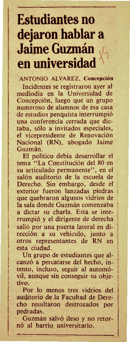 Estudiantes no dejaron de hablar de Jaime Guzmán en universidad