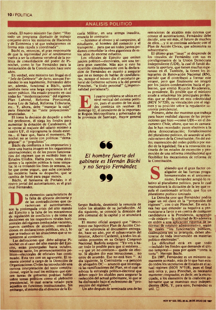 El hombre fuerte del gabinete es Hernán Büchi y no Sergio Frenández.