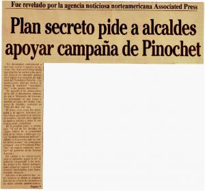 Plan secreto pide a alcaldes apoyar campaña de Pinochet