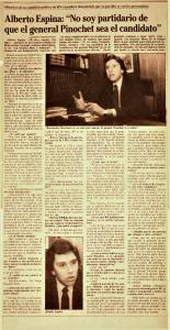 Alberto Espina: "No soy partidario de que el general Pinochet sea el candidato"