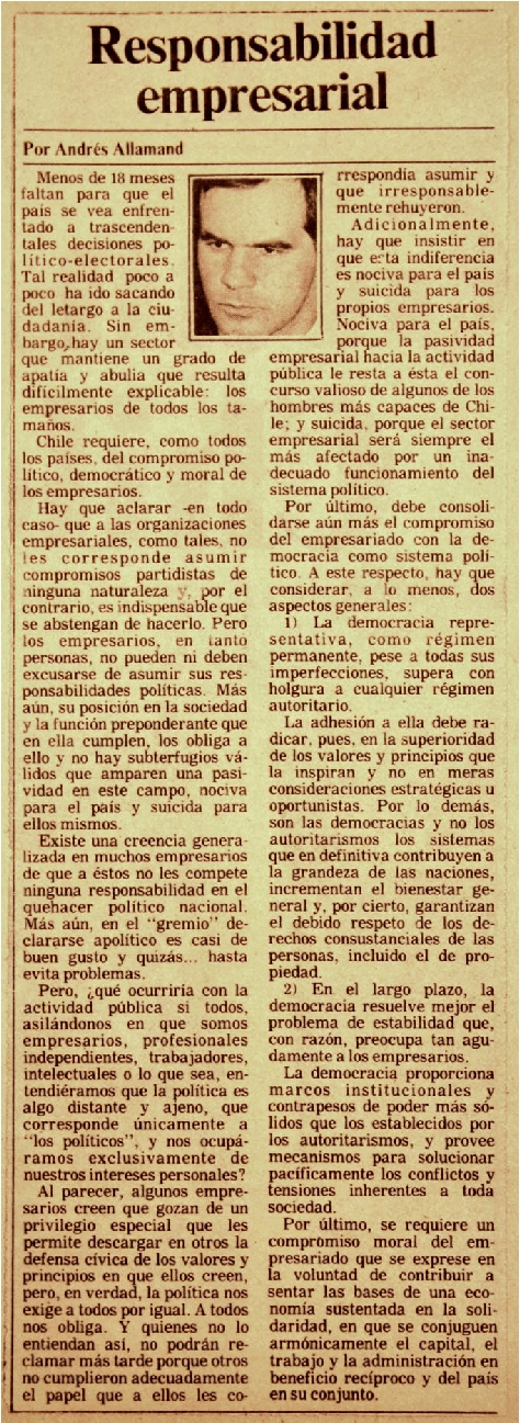 Chile, requiere, como todos los países, del compromiso político, democrático y moral de los empresarios.
