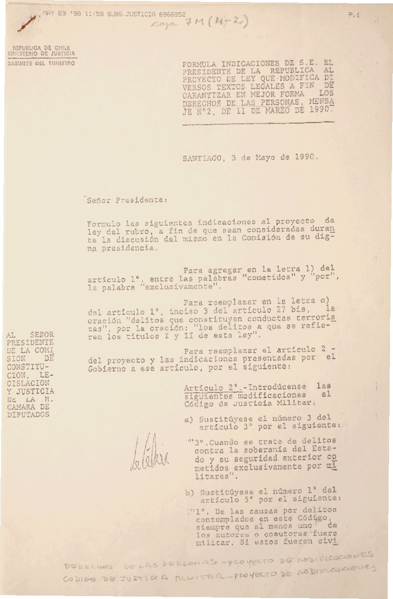 Carta al Sr. Presidente de la Comisión...