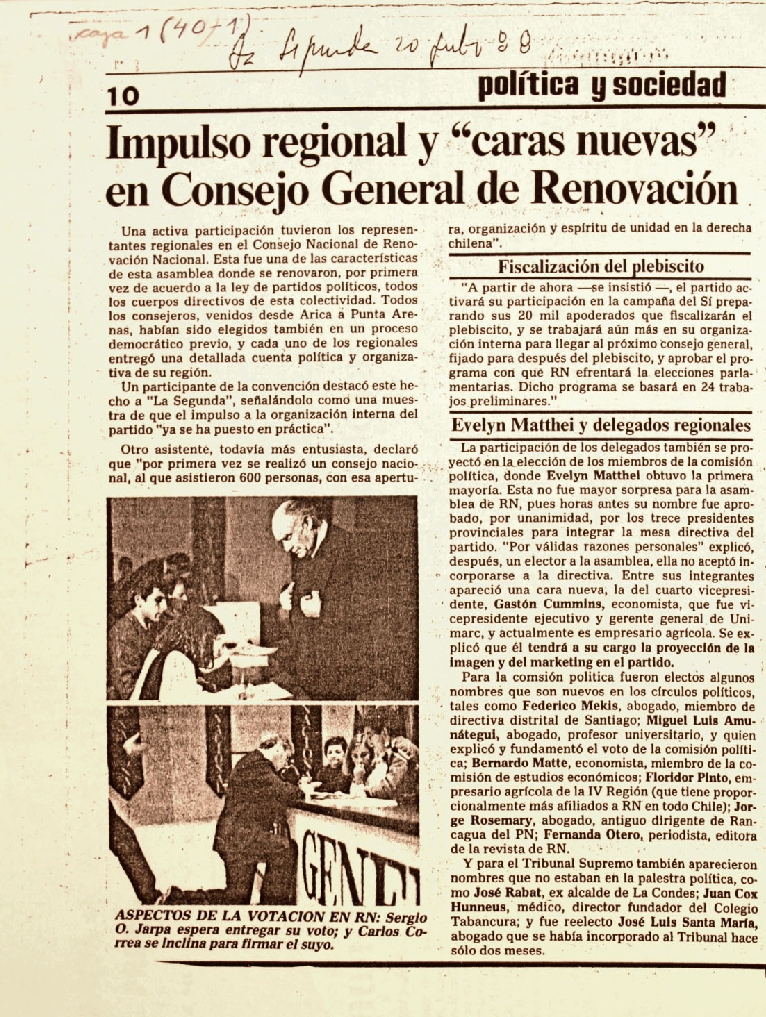 En R N reeligen a Jarpa, pero la...