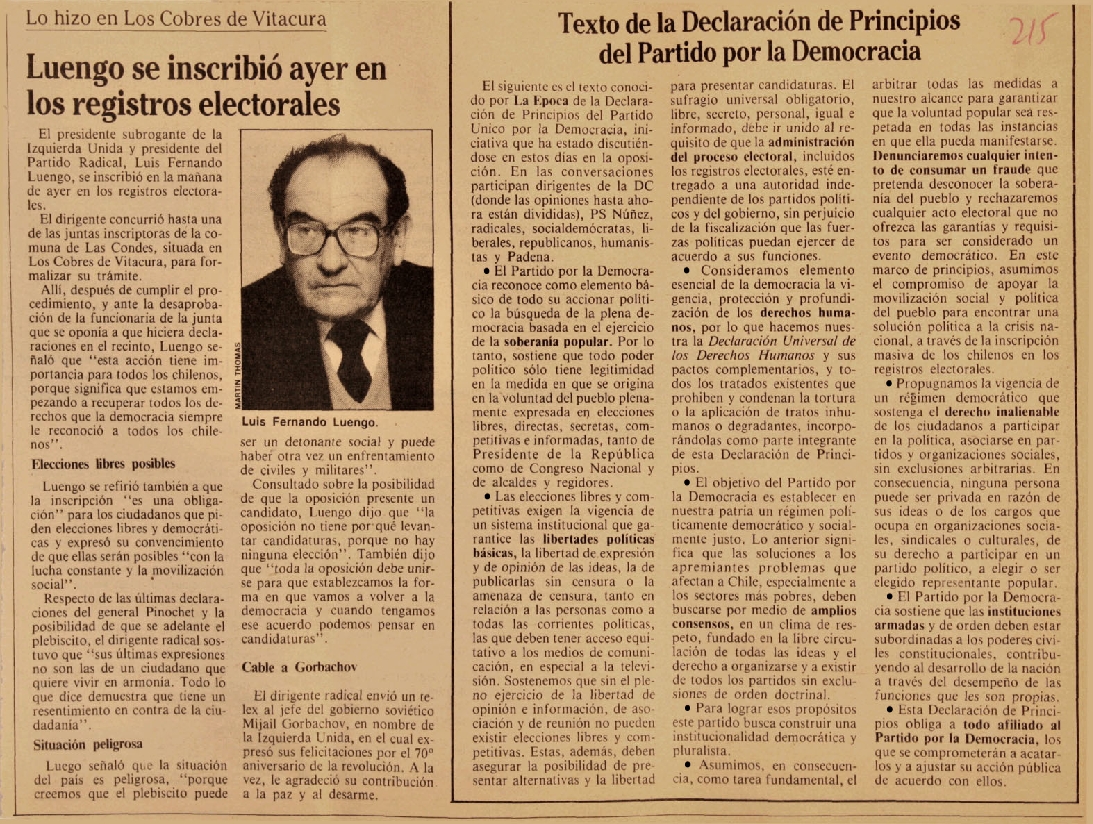 Pinochet llamó a los partidos a...