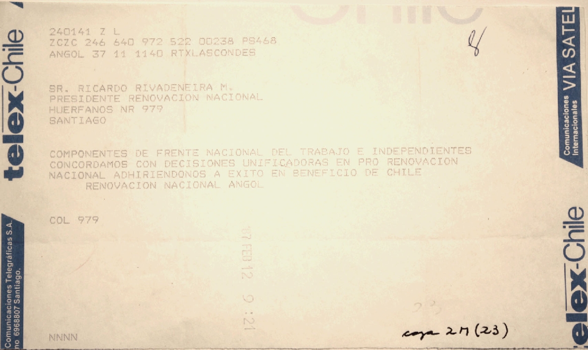 Tarjeta dirigido a Ricardo Rivadeneira...