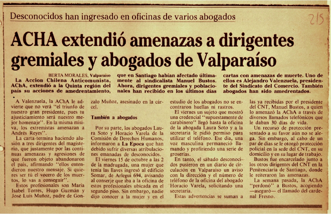 ACHA extendió amenazas a dirigentes...