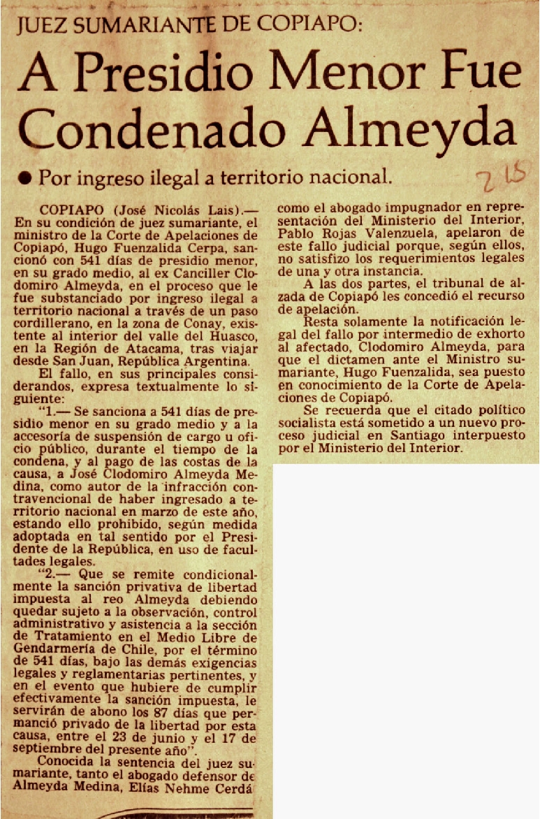 A presidio menor fue condenado Almeyda.