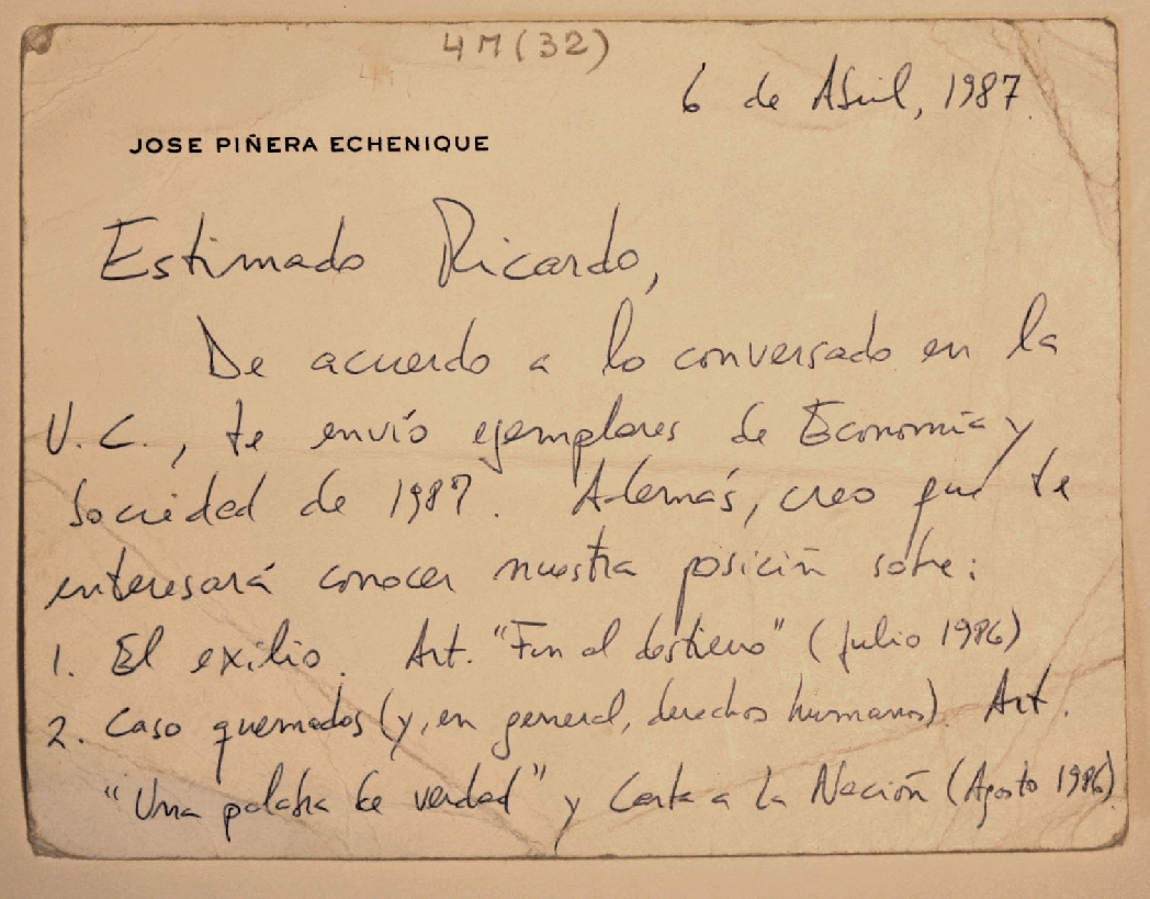 Tarjeta dirigida a Ricardo Rivadeneira...