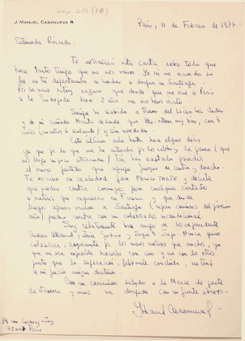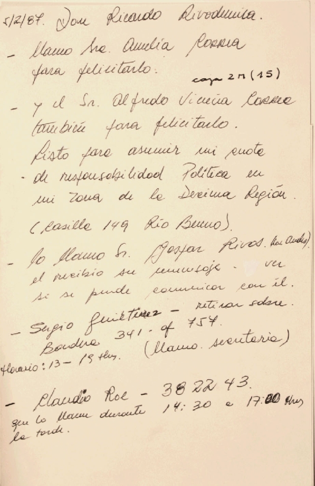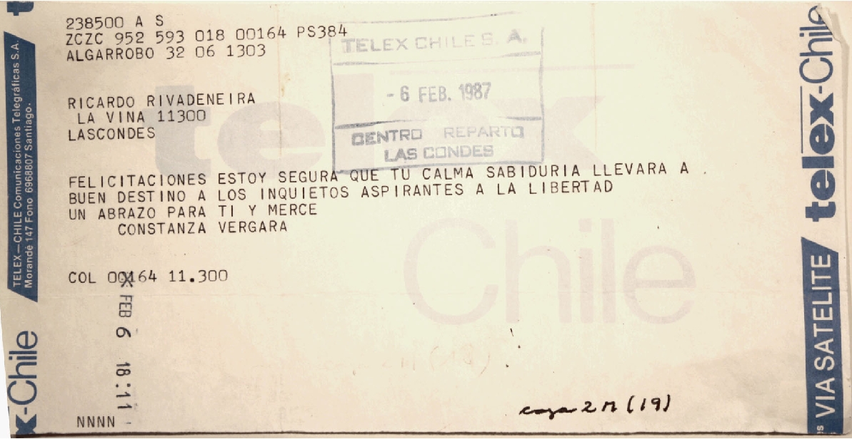 Tarjeta dirigido a Ricardo Rivadeneira...