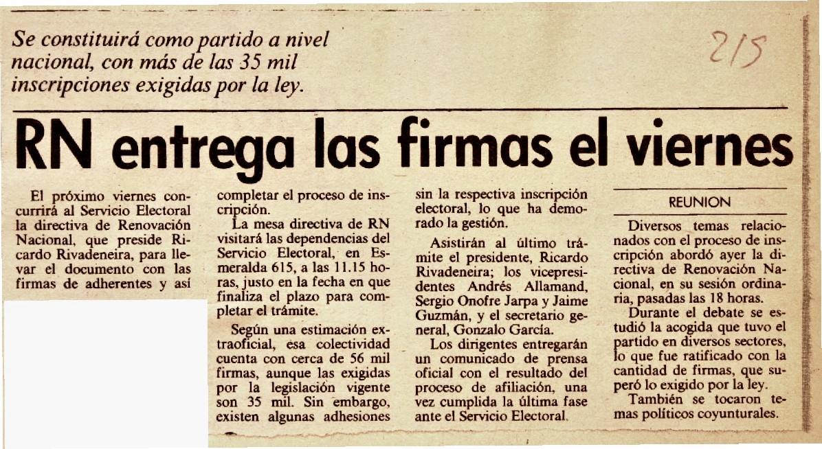 RN entrega las firmas el viernes.