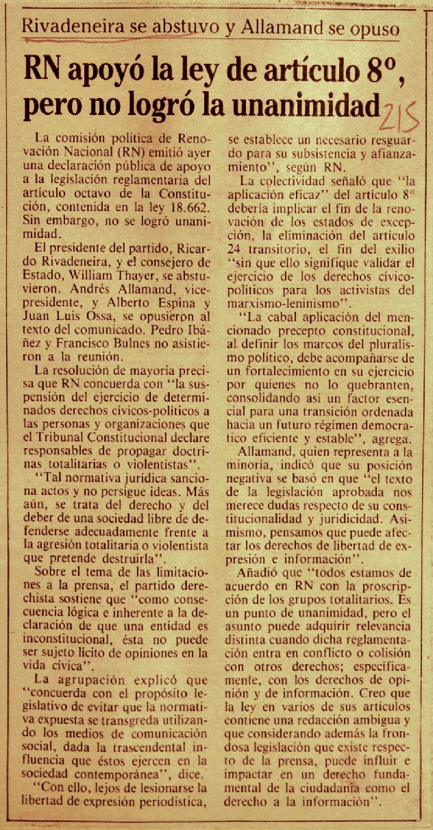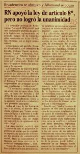 RN apoyó la ley de artículo 8° pero no logró la unanimidad.