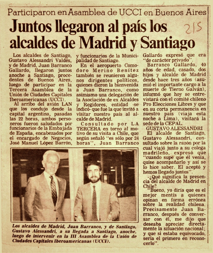 Juntos llegaron al país los alcaldes de Madrid y Santiago.