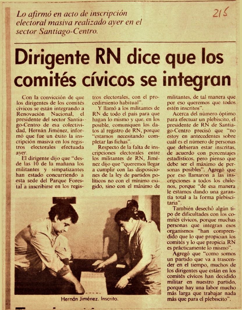 Ultimas Noticias, Santiago, 15 de Noviembre de 1987