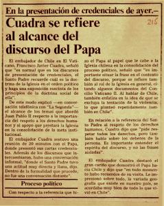 Cuadra se refiere al alcance del discurso del Papa.