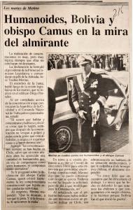 Humanoides, Bolivia y obispo Camus en la mira del almirante.