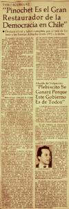 "Pinochet es el gran restaurador de la democracia en Chile"