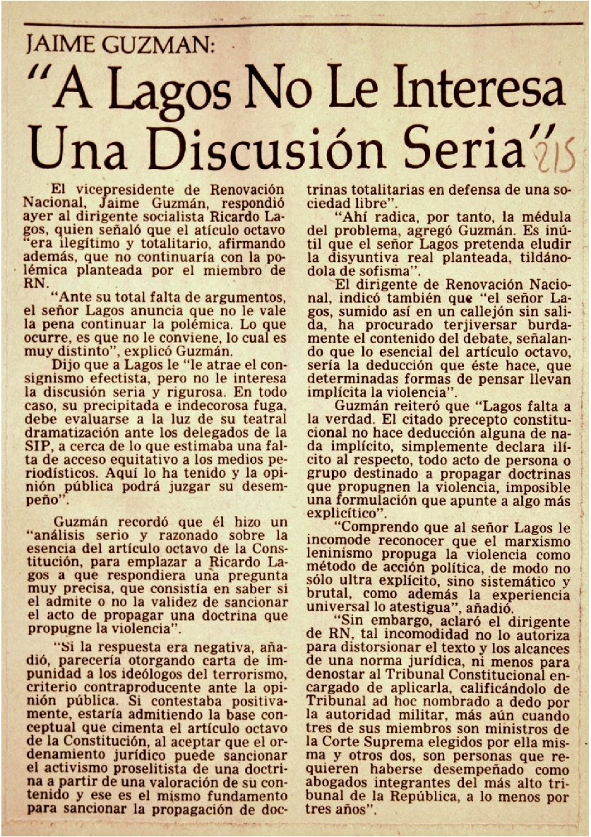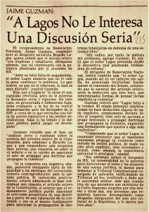 Lagos falta a la verdad, declaró Jaime Guzmán.