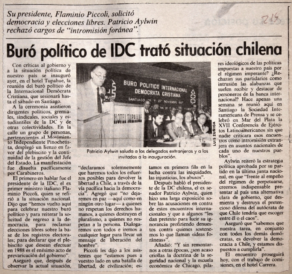 Las Ultimas Noticias, Santiago, 26 de Noviembre de 1987