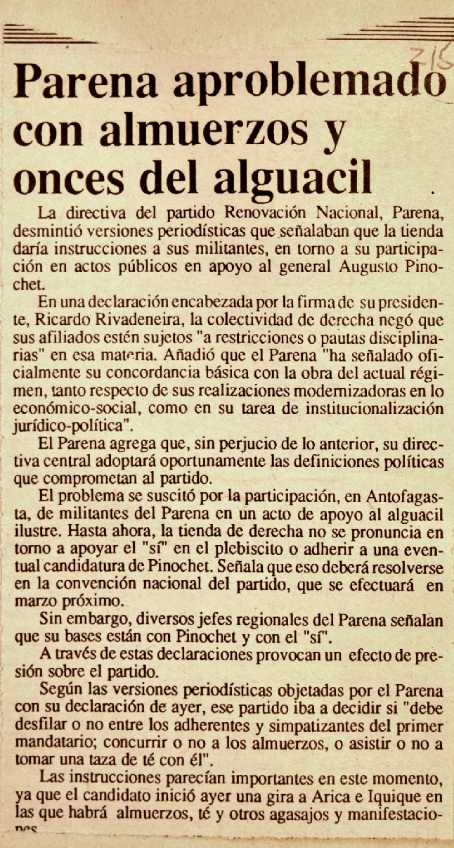 Renovación Nacional ha planteado su concordancia básica con la obra del actual régimen.