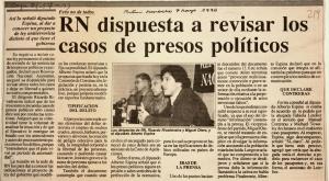 » R. N. dispuesta a revisar los casos de presos políticos : pero no todos