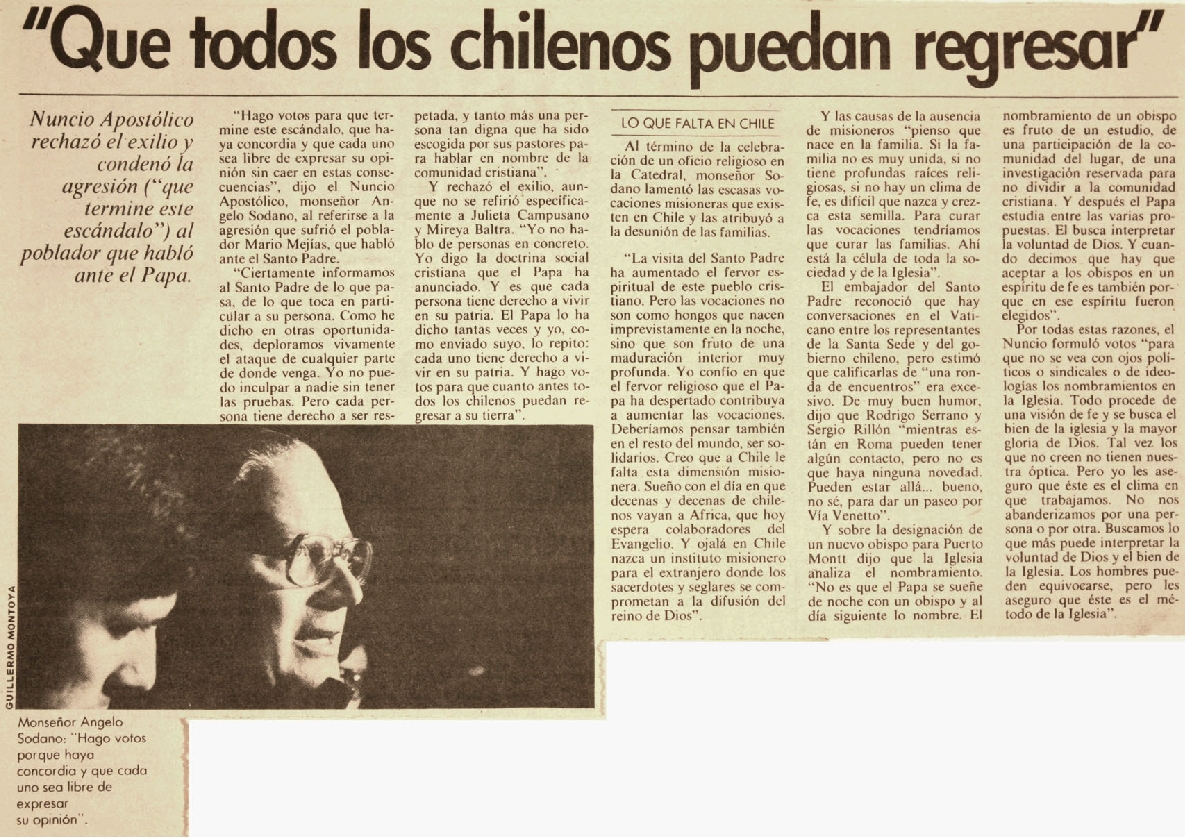 Ultimas Noticias, Santiago, 18 de mayo de 1987