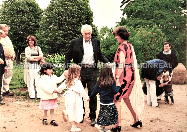 Mercedes Hurtado y Ricardo Rivadeneira jugando a la ronda con sus nietos Isabel Rivadeneira Kelly, María Eyzaguirre Rivadeneira, y Pilar Rivadeneira Novoa en su 40 aniversario de matrimonio, el 25 de octubre de 2008