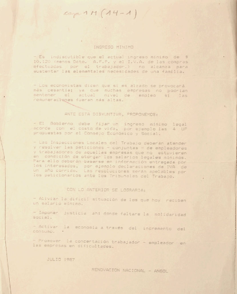Se solicita proponer al gobierno fijar ingreso mínimo legal