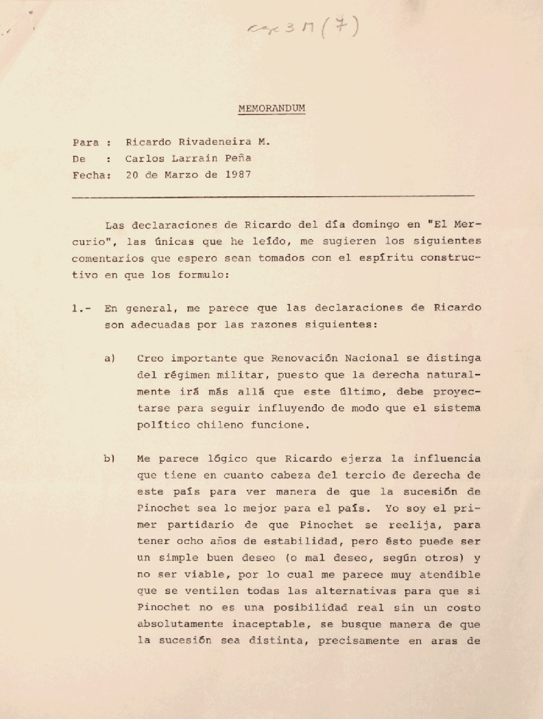 Con copia a Andrés Allamand, Juan Luis Ossa, Eugenio Valenzuela y Cristián Zegers