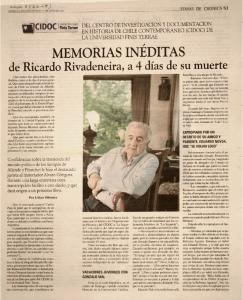 Memorias inéditas de Ricardo Rivadeneira, a 4 días de su muerte