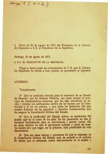 Oficio de 23 de agosto de 1973 del Presidente de la Cámara de Diputados a S.E. el Presidente de la República